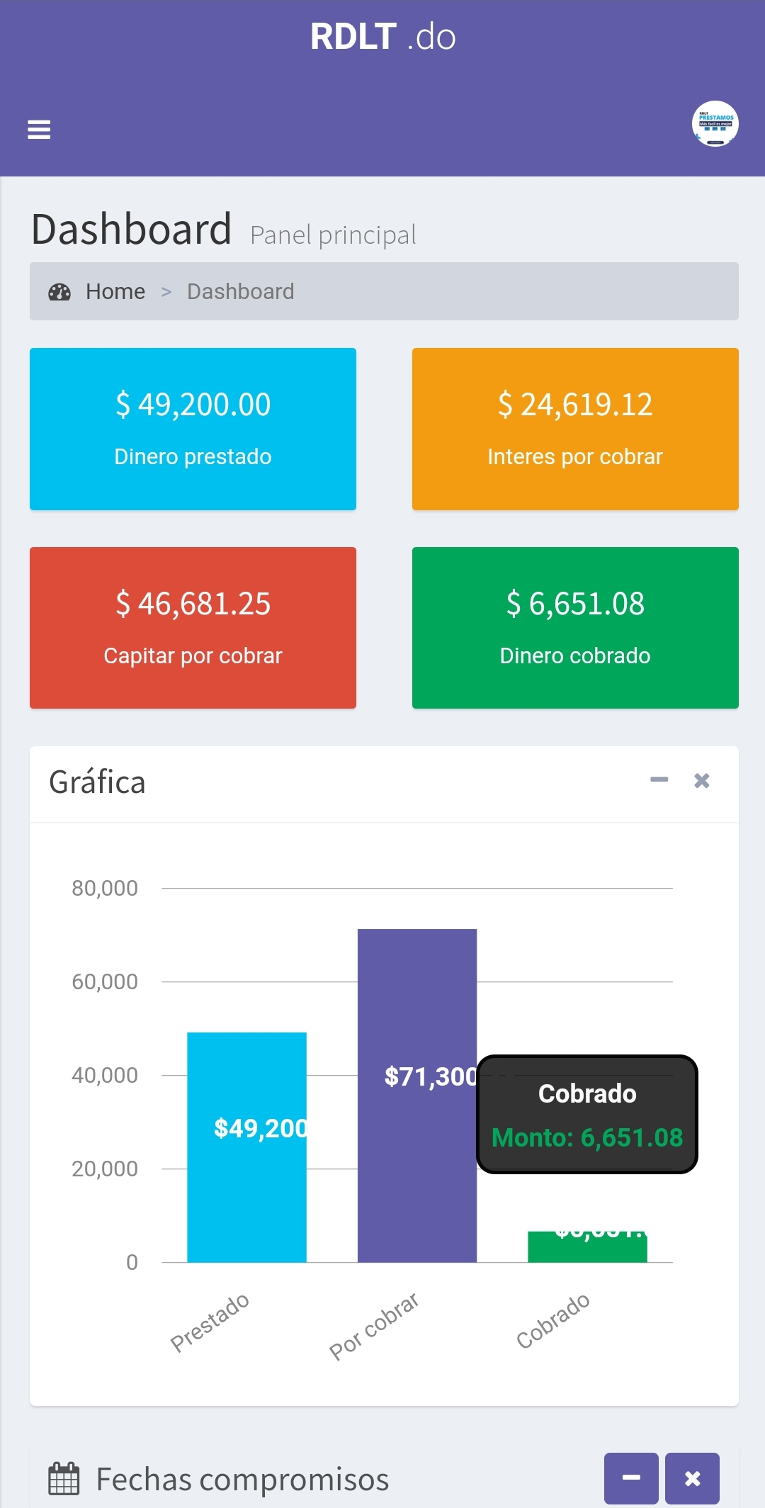 Con EloanApp puede gestionar todos sus prestamos de forma muy sencilla. Cartera de clientes, cálculo de cuotas, casos en legal, cálculo de mora, alertas de cobros en atraso, alertas de próximos cobros, dinero prestado, capital por cobrar, interés por cobrar, dinero cobrado y mucho más.